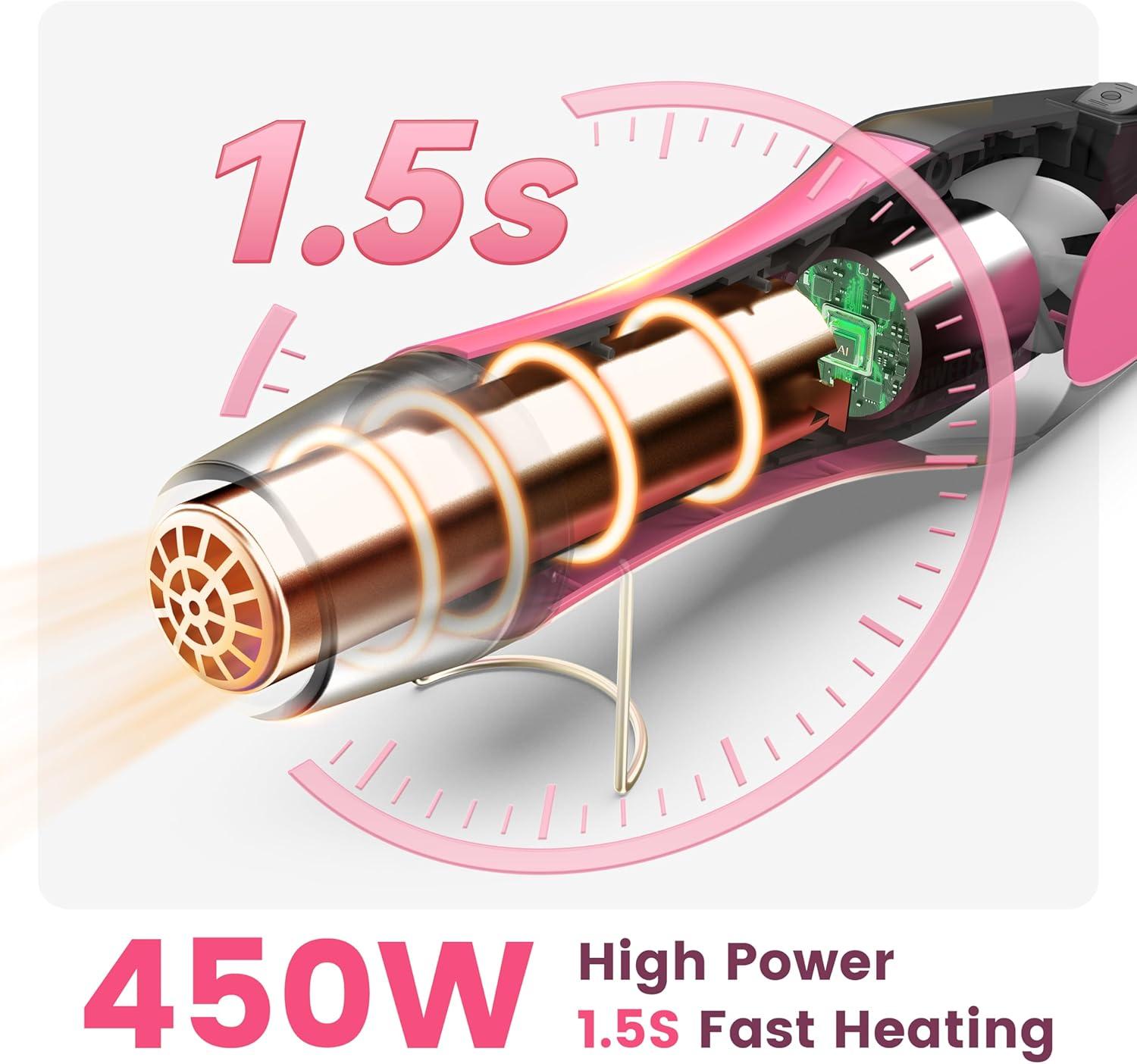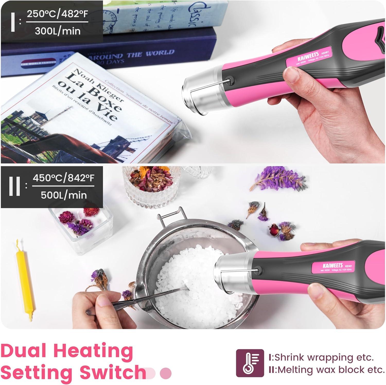 Ergonomic Design : The KAIWEETS Heat Gun is lightweight and portable, feels as comfortable as holding a pencil, makes almost imperceptible noise, and comes with a 4.9-foot cable and retractable stand for crafting convenience and reduced fatigue