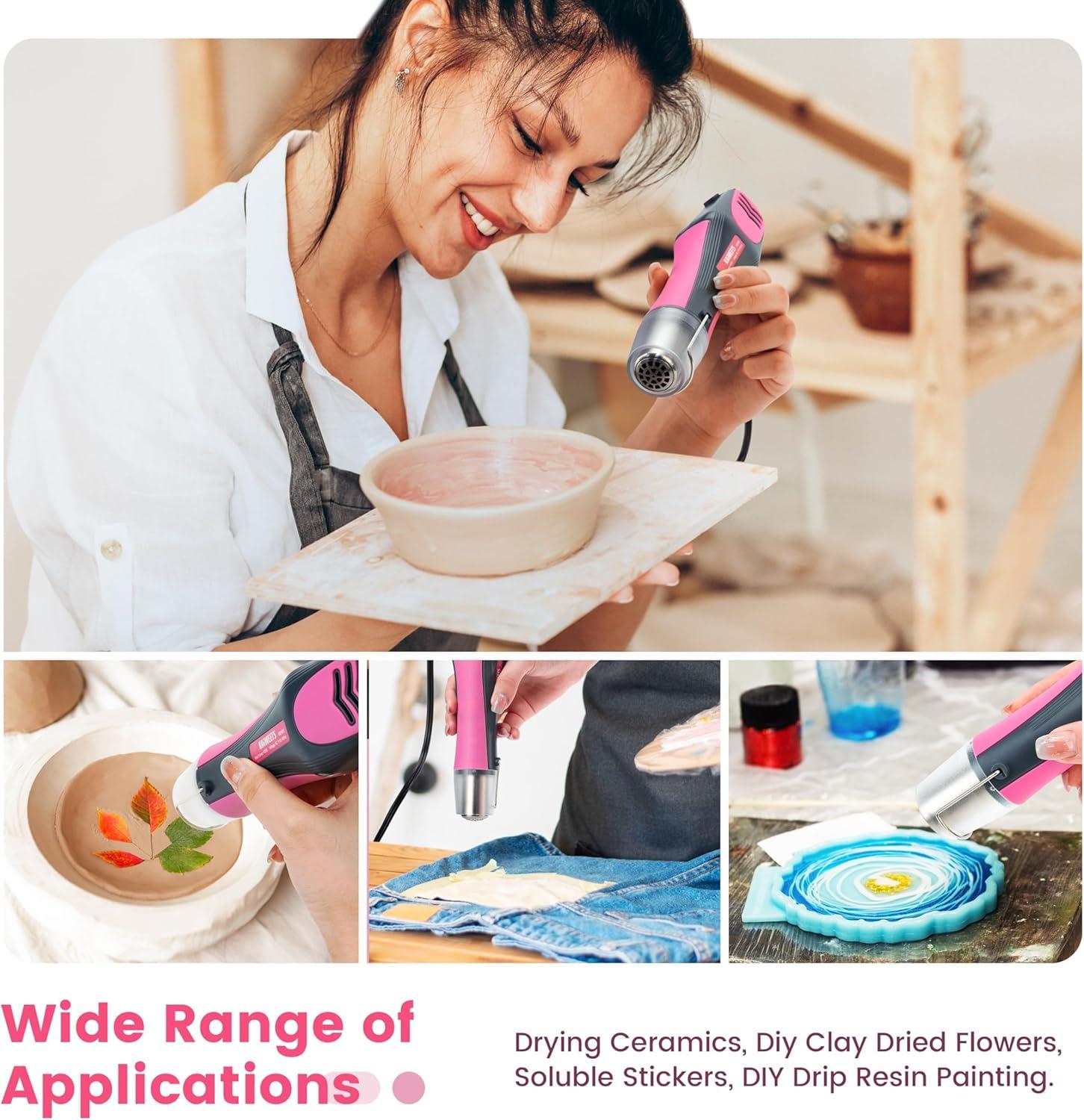 Wide Application : The heat gun can be used for crafting, shrink wrapping, bubble removal, heat shrink tubing, making candles, heating resin, removing paint, watercolor drying, and more. If you like DIY, it is a good choice among your many tools