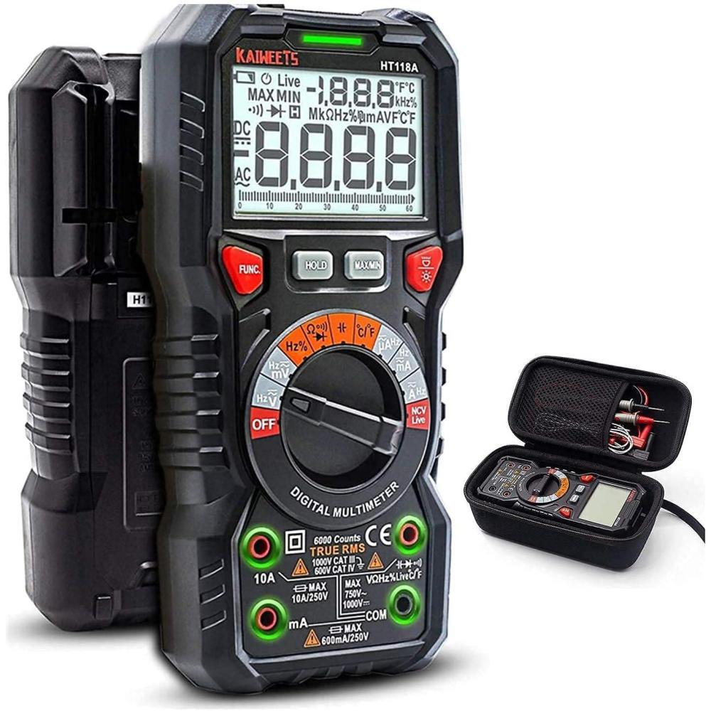 Multimeter with Carrying Case: This bundle includes a KAIWEETS HT118A multimeter and a carrying case.